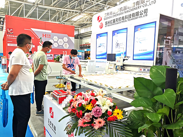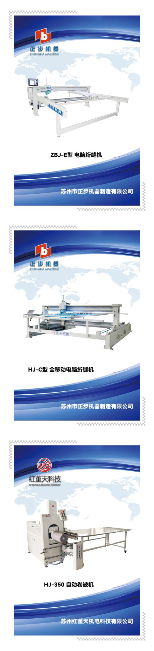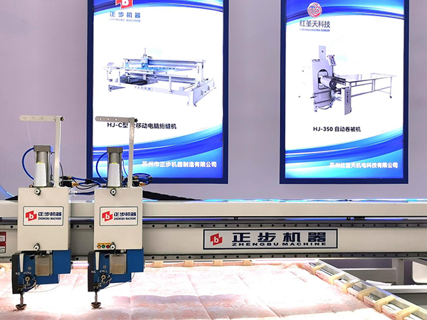 参展产品有直驱双头电脑高速绗缝机,卷被机,电脑高速绗缝机。